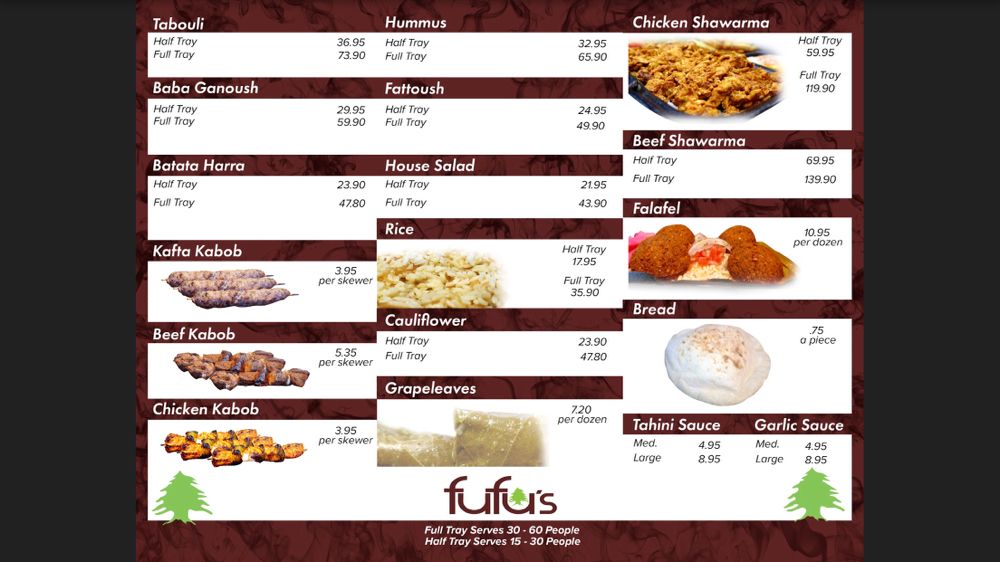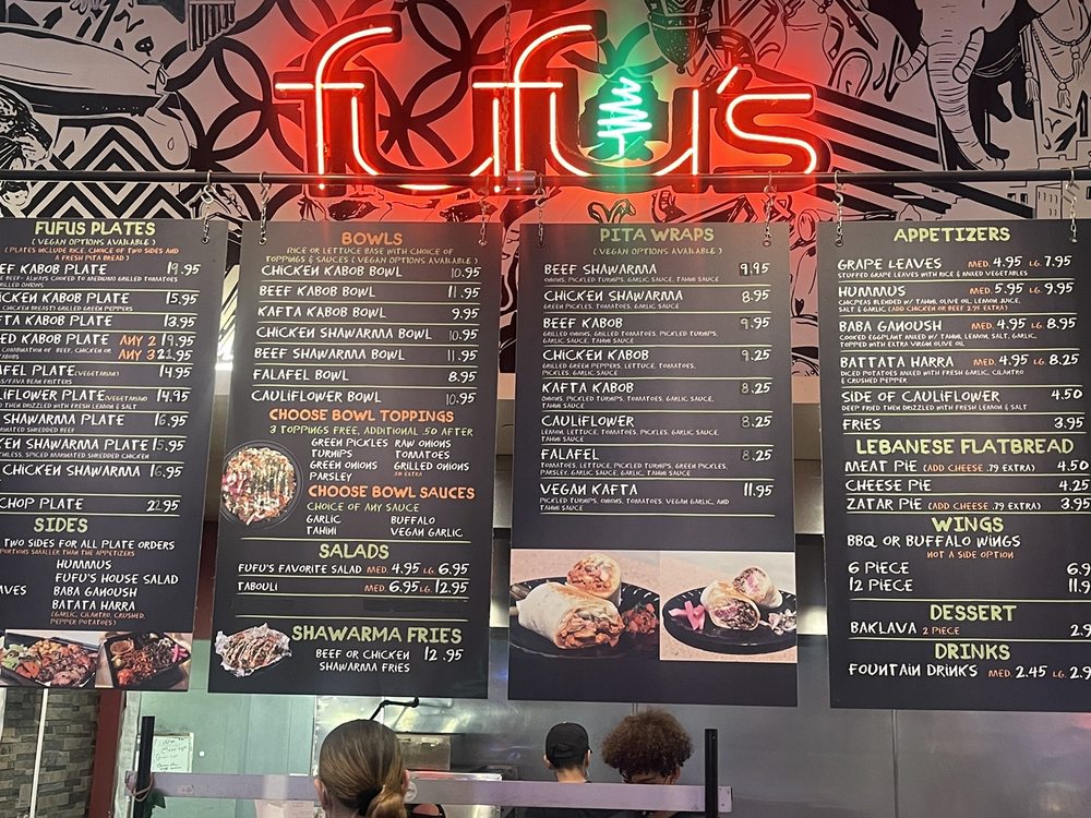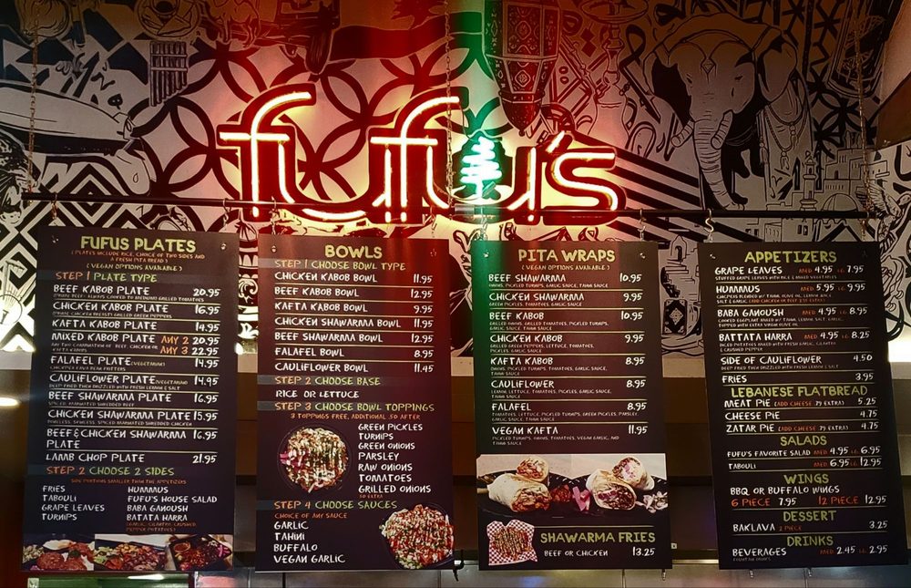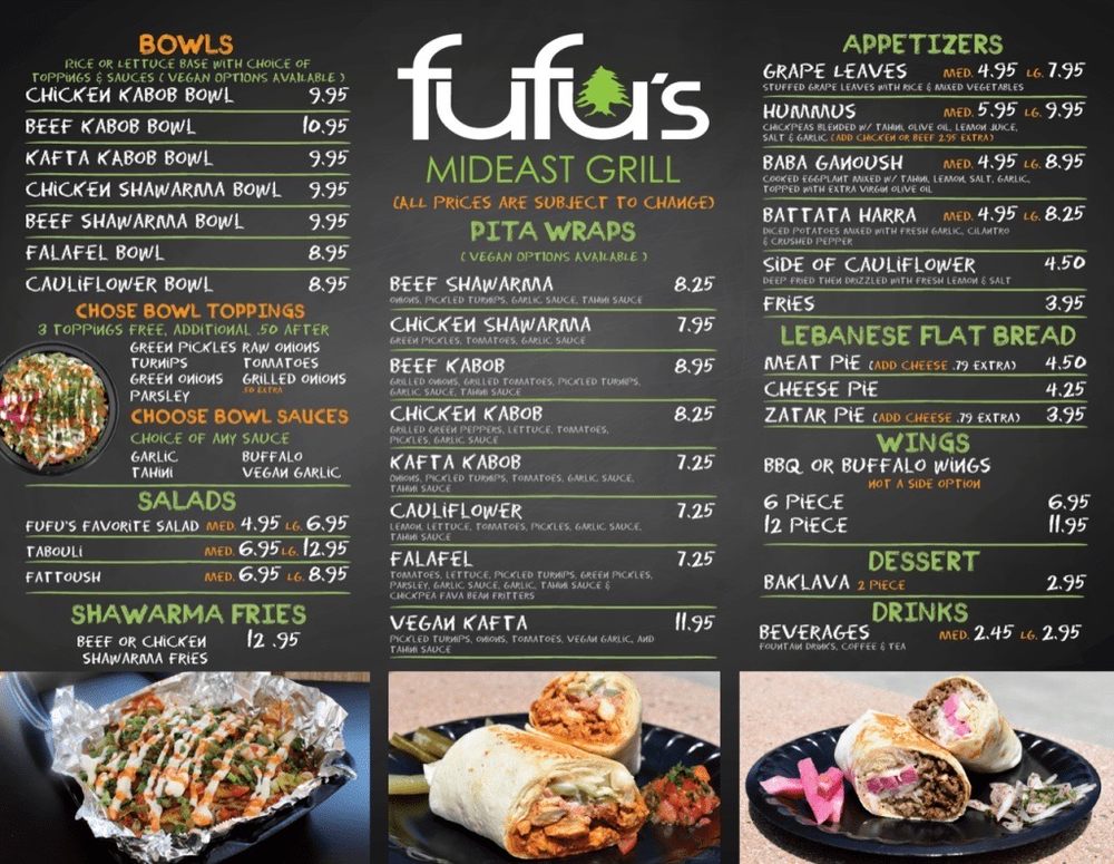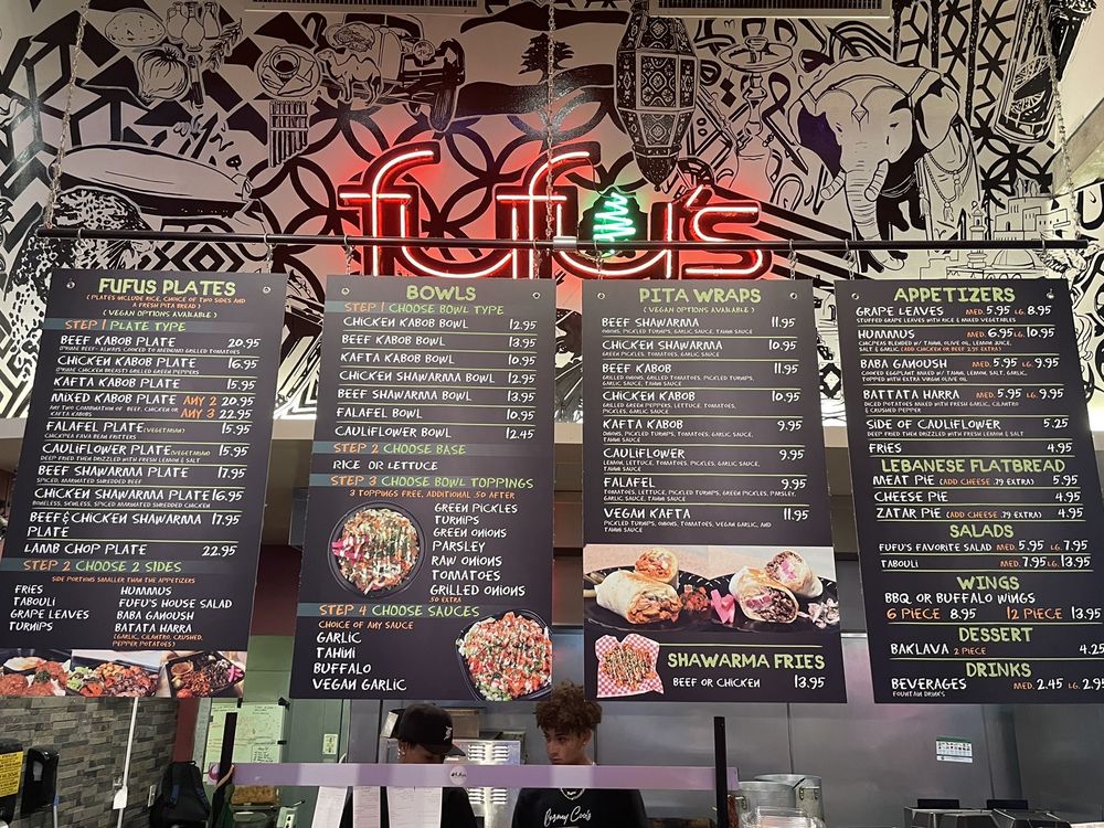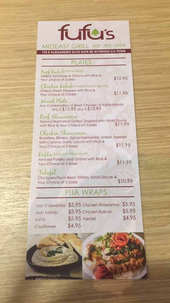 Fufu’s Mid East Grill, located in Riverside, CA, offers a mouth-watering menu of Mediterranean and Middle Eastern dishes. This casual restaurant provides various options for vegan and vegetarian customers, along with delivery, takeout, and catering services. The flavorful Fufus Plates feature prime beef, chicken, or kafta kabobs, while the Bowls offer delicious options like chicken shawarma and falafel. The Pita Wraps, such as the beef shawarma and chicken kabob wraps, are packed with flavorful ingredients like pickled turnips and garlic sauce. Customer reviews rave about the tasty food, friendly staff, and vibrant ambiance. With convenient hours and a wide range of seating options, Fufu’s is a must-visit destination for anyone craving authentic Mediterranean cuisine in a lively atmosphere.
